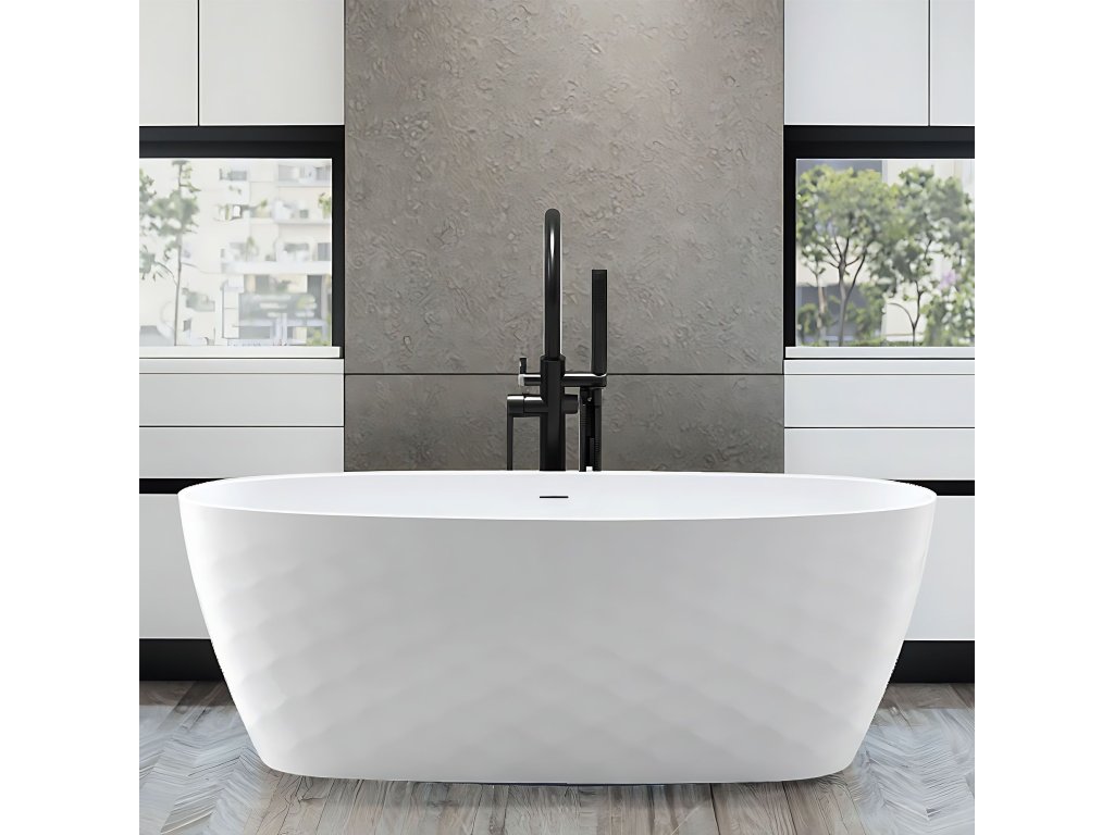 Voľne stojaca vaňa Gaja spája moderný štýl s nadčasovou eleganciou. Jej jemný oválny tvar a charakteristický diamantový vzor na vonkajšom povrchu vytvárajú jedinečný vizuálny efekt, ktorý priťahuje pozornosť a dodáva interiéru luxusný vzhľad. Tento model sa dokonale hodí do moderných, glamour aj klasických kúpeľní a stáva sa centrálnym prvkom priestoru. Vyrobená z vysokokvalitného sanitárneho akrylu, vaňa Gaja sa vyznačuje hladkým povrchom, odolnosťou proti poškriabaniu a jednoduchou údržbou. Materiál si dlho udržiava teplotu vody, vďaka čomu zostáva kúpeľ príjemne teplý po dlhý čas.