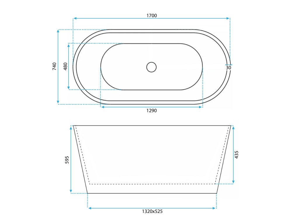 Voľne stojaca akrylátová vaňa OFELIA 170