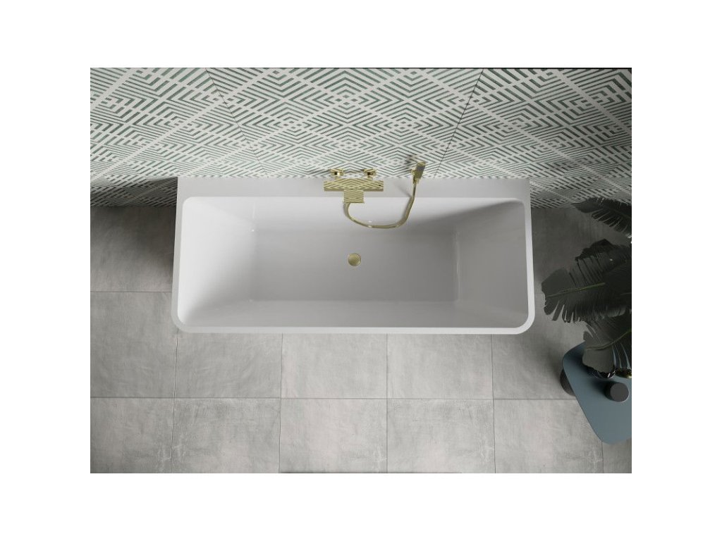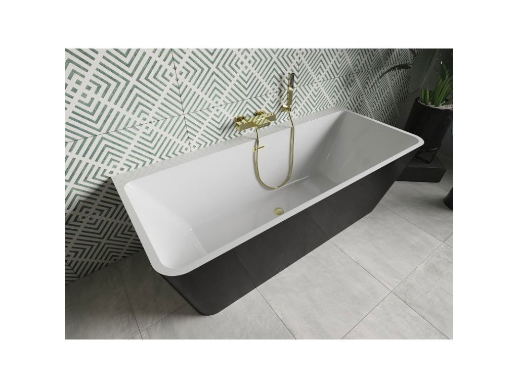 Mexen Volta je elegantná nástenná voľne stojaca vaňa s rozmermi 170 x 75 cm, ktorá je k dispozícii v štýlovej bielo-čiernej kombinácii so zlatým kartáčovaným povrchom. Je vyrobená zo sanitárneho akrylátu a je odolná voči dechtovaniu a UV žiareniu, čo zaručuje dlhotrvajúci lesk. Vďaka centrálnemu odtoku a zabudovanému prepadu je používanie vane pohodlné a funkčné. Súčasťou balenia je sifón a zacvakávacia zátka, vďaka čomu je ideálnou voľbou do modernej kúpeľne.Dodatočné parametre