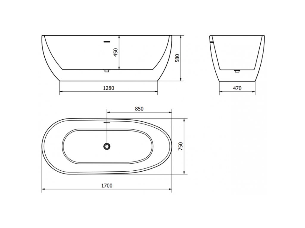 Voľne stojaca vaňa Mexen Eos 170 x 75 cm, biela, prepad z brúseného zlata - 52471707500-55