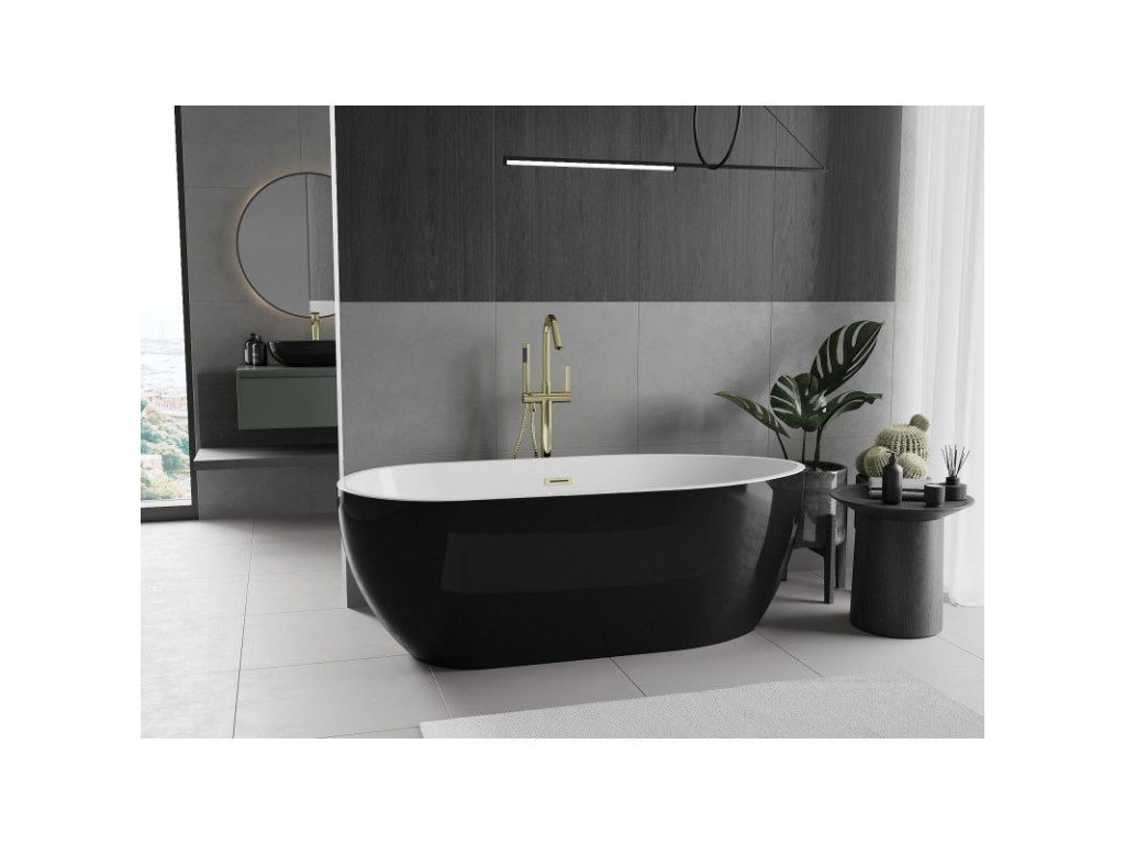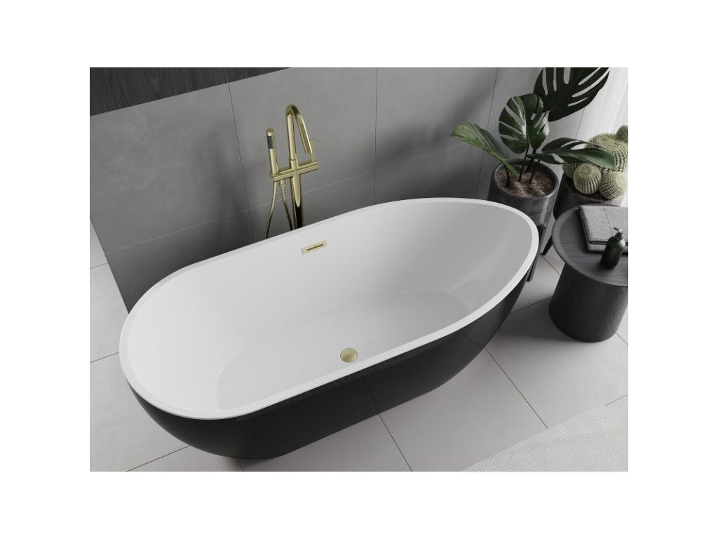 Ponúkame vám voľne stojacu vaňu s rozmermi 170 x 75 cm v elegantnej farebnej kombinácii bielej a čiernej farby s povrchovou úpravou z brúseného zlata. Jej oválny tvar a vysokokvalitný sanitárny akrylát zaručujú pohodlie a estetiku na najvyššej úrovni. Vaňa je voľne stojaca, ľahko sa inštaluje a má odtok umiestnený v strede. Okrem toho bola navrhnutá tak, aby bola odolná voči dechtovaniu a UV žiareniu, čo zaručuje dlhodobé používanie bez straty kvality.Dodatočné parametre