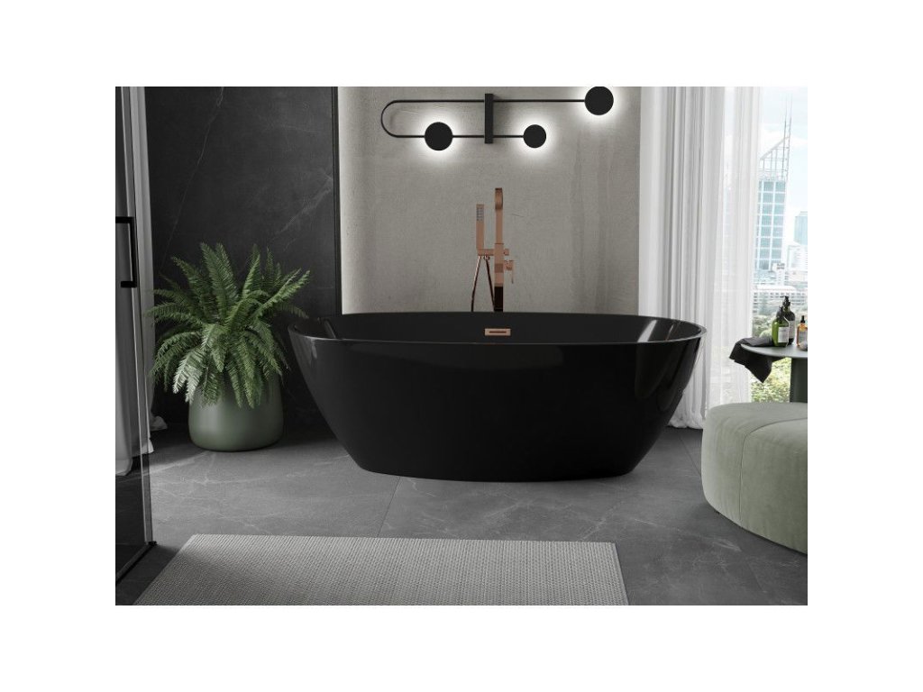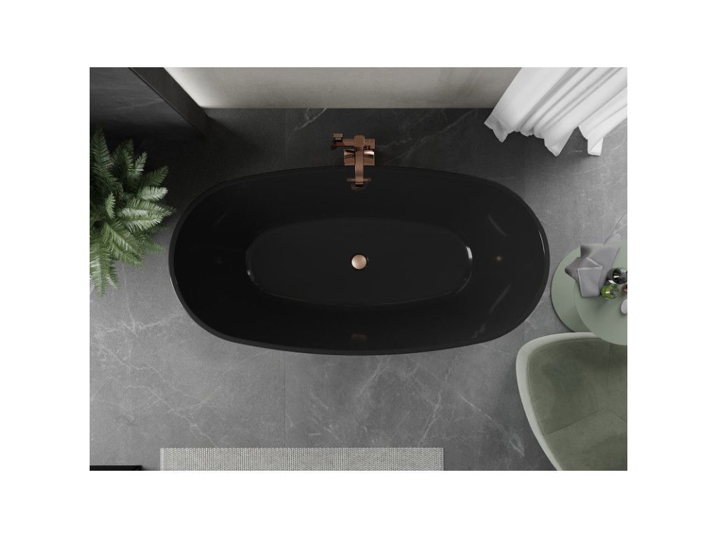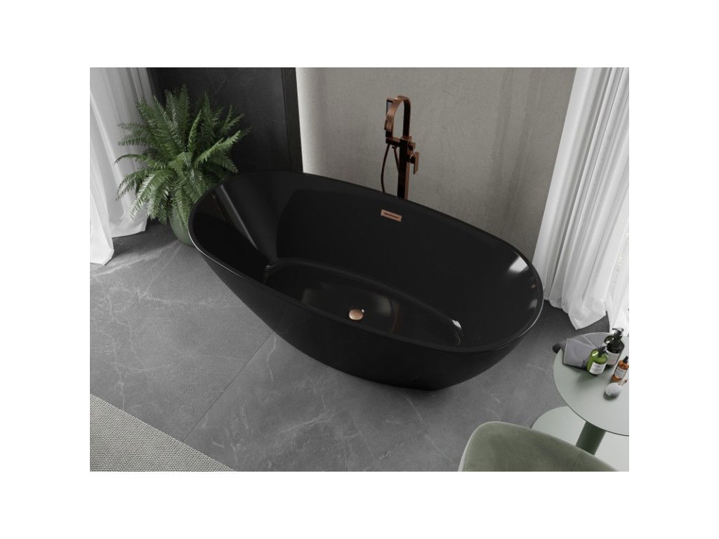 Voľne stojaca vaňa Mexen Eris 170 x 80 cm, čierna, prepad z brúsenej medi - 53441708070-65