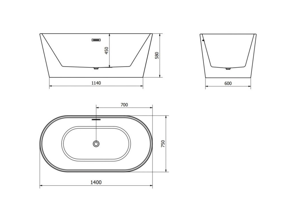 Voľne stojaca vaňa Mexen Luna 140 x 75 cm, biela/čierna, prepad z brúseného zlata - 52031407575-55