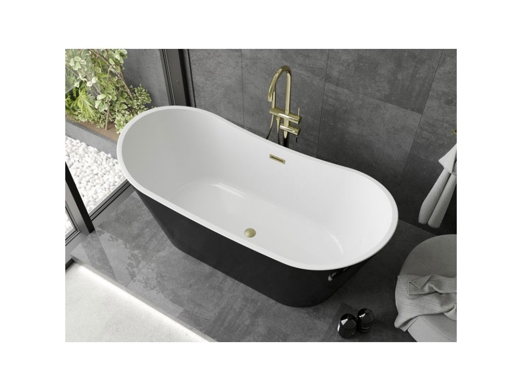 Voľne stojaca vaňa Mexen Montana 150 x 75 cm, biela/čierna, prepad z brúseného zlata - 52011507575-55