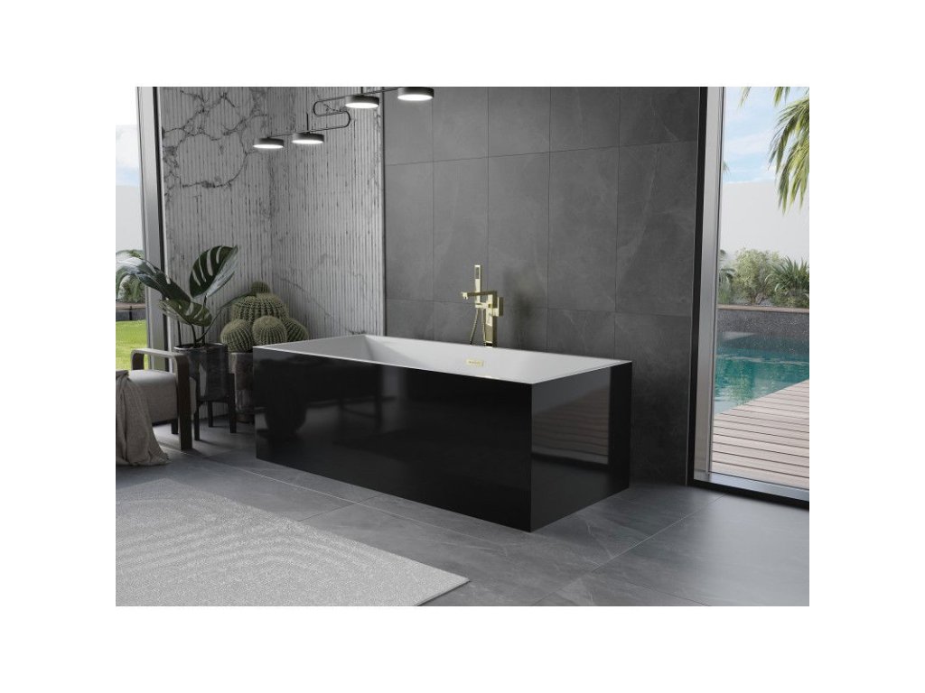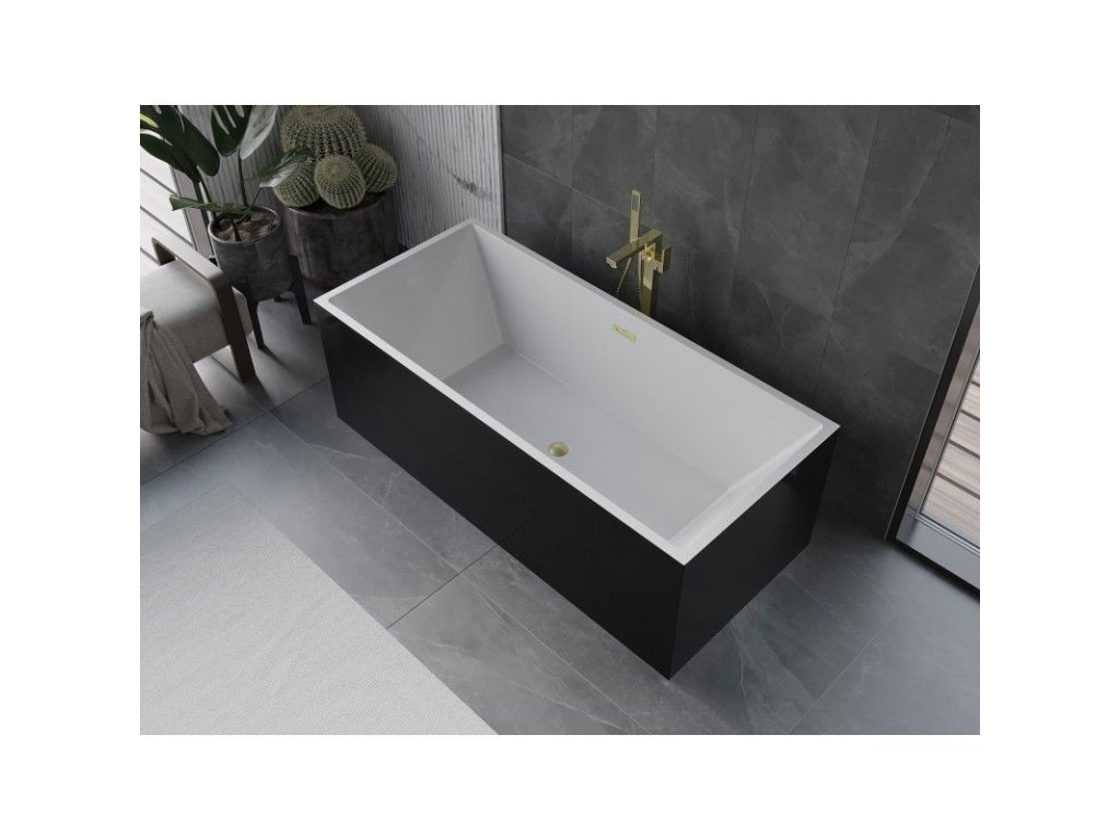 Voľne stojaca vaňa Mexen Vigo 178,5 x 80 cm, biela/čierna, prepad z brúseného zlata - 51251788075-55