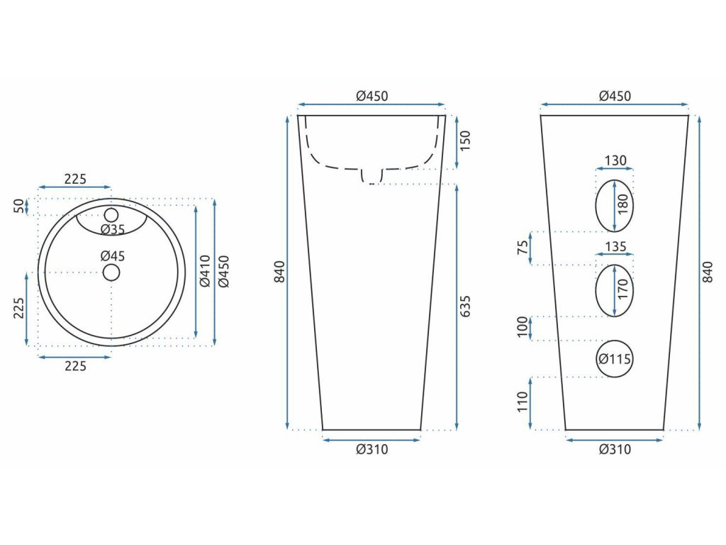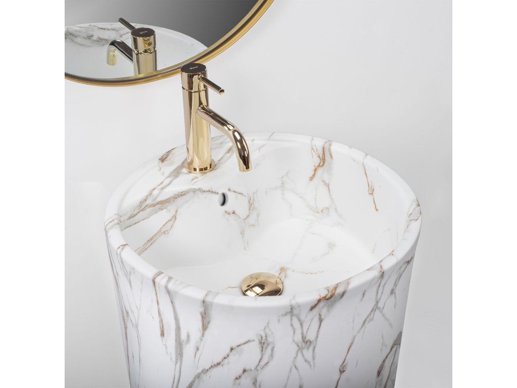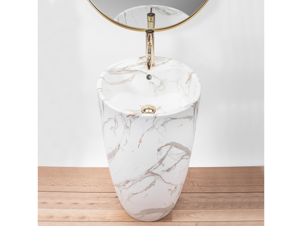 Voľne stojace umývadlo je jedinečný výrobok, navrhnutý s ohľadom na vzhľad aj funkčnosť. Neuveriteľne moderný dizajn dokonale zapadne do každej štýlovo zariadenej kúpeľne. Klasický tvar umývadla, otvor pre batériu a prepad z nej robia praktickú voľbu do vašej kúpeľne. Vhodné batérie, sifóny a odpadové ventily nájdete v našom sortimente.Dodatočné parametre