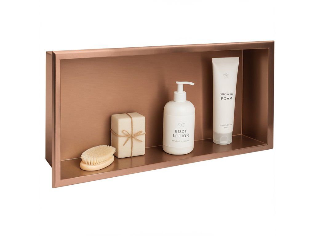 Vstavaná kúpeľňová polica v odtieni brúsená meď je elegantné a funkčné riešenie, ktoré umožňuje praktické využitie priestoru v sprchovom kúte alebo nad vaňou. Vyrobená z vysoko kvalitnej nehrdzavejúcej ocele Aisi 304, je odolná voči vlhkosti, korózii a každodennému používaniu, čo z nej robí ideálnu voľbu pre moderné kúpeľne. Vďaka montáži do niky polica zabezpečuje estetický, minimalistický efekt a zároveň ponúka pohodlné miesto na odkladanie kozmetiky, kúpeľňových doplnkov či ošetrujúcich prípravkov. Jej povrchová úprava v brúsenom medi sa dokonale hodí k armatúram a doplnkom v podobných odtieňoch a podčiarkuje moderný charakter interiéru.Dodatočné parametre