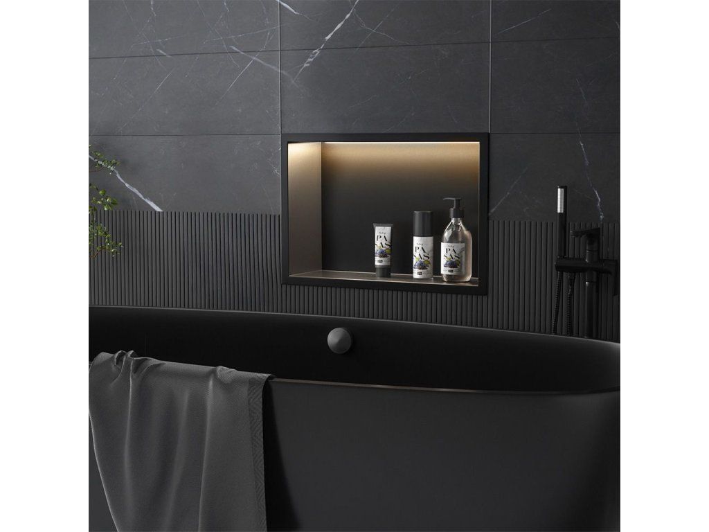 Pridajte do svojej kúpeľne výnimočný akcent so zabudovanou LED poličkou v elegantnej čiernej farbe. Táto štýlová zabudovaná kúpeľňová LED polička 30×45 nielenže očarí moderným vzhľadom, ale tiež ponúka funkčnosť, ktorú potrebujete. Vyrobená z vysoko kvalitnej nerezovej ocele, nie je len odolná, ale aj ľahko udržiavateľná v čistote. Vďaka LED podsvieteniu získa priestor okolo poličky jemné a relaxačné svetlo, ideálne na vytvorenie uvoľnenej atmosféry pri večernom oddychu vo vani.Hlavné vlastnosti produktu:Farba: Elegantná a moderná čierna, ktorá sa hodí do každého interiéruMateriál: Vyrobené z nerezovej ocele pre dlhú životnosťSpôsob montáže: Prilepované pre jednoduchosť a pohodlieRozmery: Šírka 450 mm, výška 300 mm, hĺbka 100 mmZáruka: 24 mesiacov pre úplný pokoj na dušiInvestujte do zabudovanej poličky, ktorá ponúka nielen dizajn a funkčnosť, ale aj praktické využitie. Jej vyhotovenie z materiálov najvyššej kvality zaručuje, že produkt odolá skúške času a každodennému používaniu. LED podsvietenie nielen zdôrazňuje estetiku produktu, ale aj umožňuje lepšiu viditeľnosť, čo je obzvlášť užitočné v noci. Zabudovaný transformátor umožňuje pripojenie k elektrickej inštalácii. Okrem toho jednoduchá montáž bez použitia náradia znamená, že sa môžete rýchlo tešiť z novo zorganizovaného a štýlového priestoru vo vašej kúpeľni.Dodatočné parametre