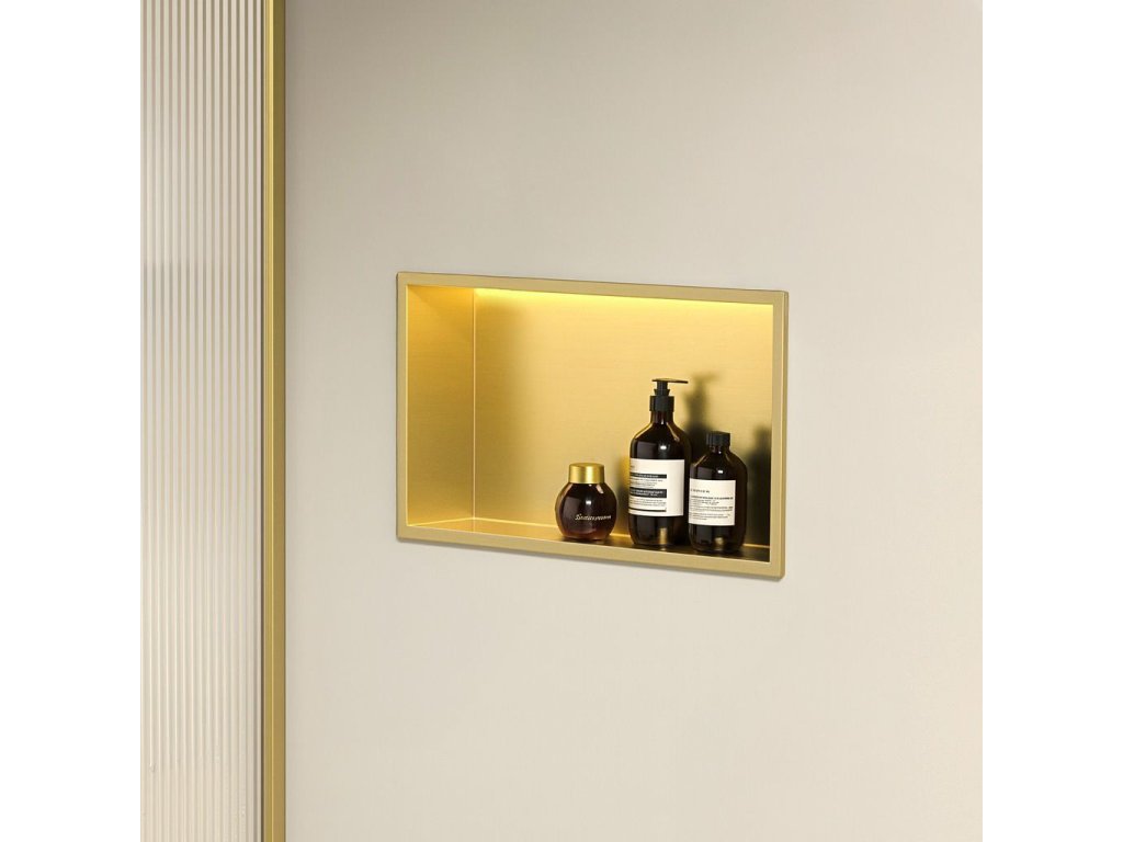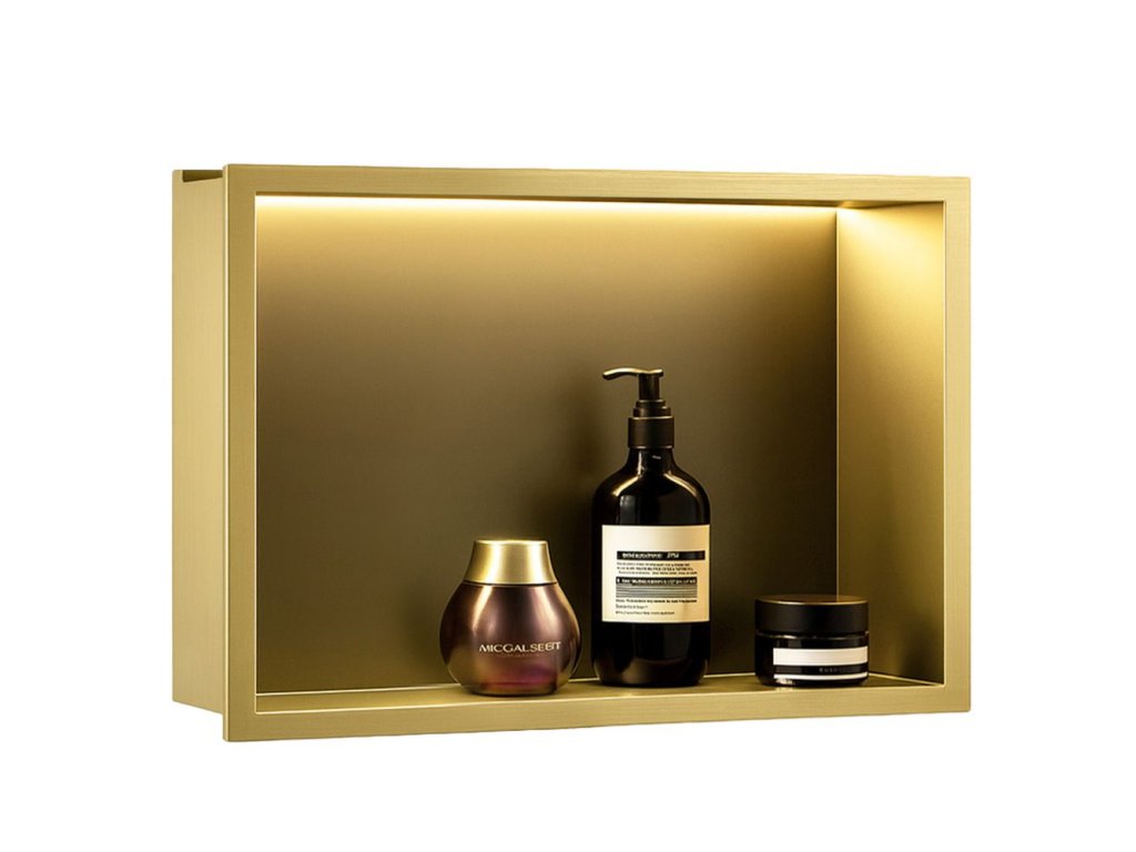 VSTAVANÁ KÚPEĽŇOVÁ POLICA LED 30x45 brush gold