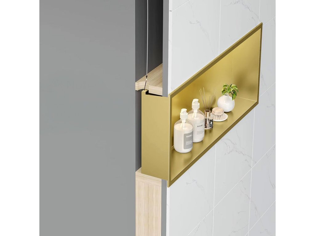 Objavte nový rozmer elegancie a funkčnosti vo svojej kúpeľni vďaka našej Vstavaná kúpeľňová polica LED 30×45. Ideálne navrhnutá tak, aby vniesla štýl a praktickosť do každého priestoru, naša polica má moderné LED podsvietenie, ktoré vytvára príjemnú atmosféru. Brúsený zlatý povrch dodáva luxusný vzhľad, vďaka čomu je výbornou voľbou pre každého, kto si cení vysokú kvalitu a jedinečný dizajn.Elegantný dizajn – brúsený zlatý povrch vyrobený z nehrdzavejúcej oceleĽahká montáž – lepiaci montážny systém, vďaka ktorému je inštalácia rýchla a bezproblémováIdeálne rozmery – šírka 450 mm, výška 300 mm a hĺbka 100 mm zabezpečujú optimálny priestor na uskladnenieLED podsvietenie – vytvára náladové svetlo, ktoré dodáva pôvab každej kúpeľni24-mesačná záruka – dlhodobá kvalita, na ktorú sa môžete spoľahnúťVýberom našej Vstavaná kúpeľňová polica LED 30×45 investujete do produktu, ktorý spája moderné technológie s klasickou krásou. Vďaka použitiu nehrdzavejúcej ocele máte istotu, že polica je odolná voči vlhkosti a korózii, čo ju robí ideálnou do kúpeľne. Subtílne LED podsvietenie nielen dodáva estetiku, ale aj uľahčuje organizáciu priestoru, umožňujúc lepšie usporiadať vaše kozmetické prípravky a kúpeľňové doplnky. Rozšírte svoj interiér o jedinečné riešenie, ktoré zvýrazní výzdobu vášho domu.Dodatočné parametre