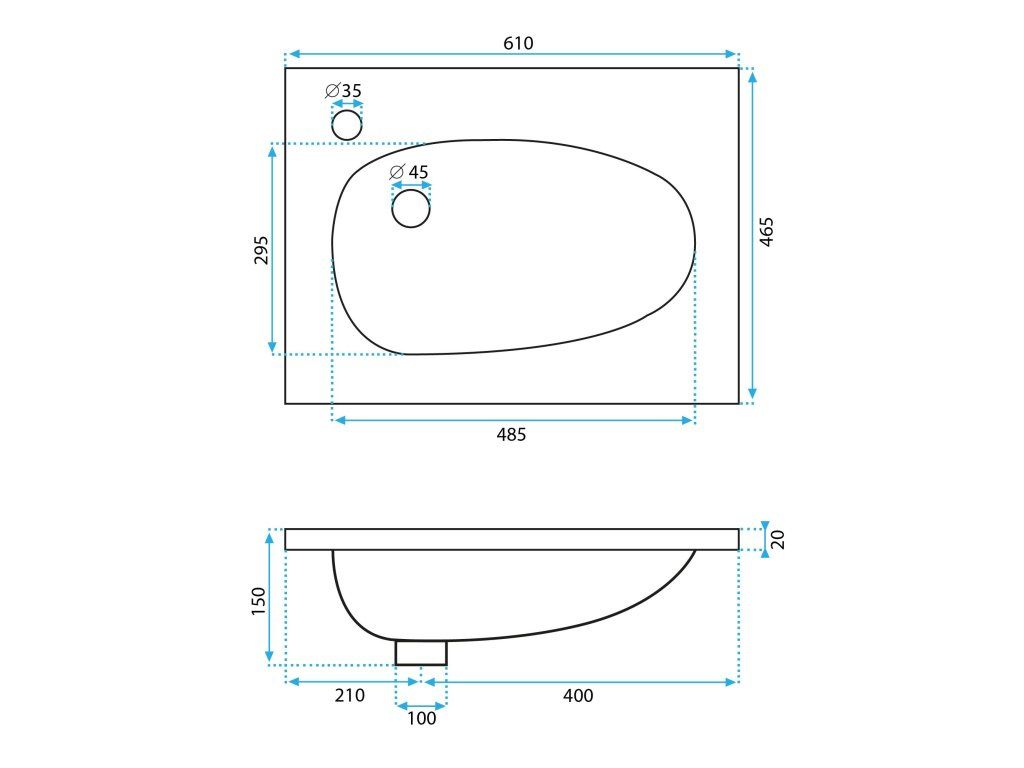 Predstavujeme vstavané umývadlo navrhnuté so zreteľom na Vaše pohodlie a praktickosť. Vďaka špeciálnemu výrobnému fázu sa umývadlo ľahko čistí. Moderný a jedinečný dizajn, rovnako ako vysoká kvalita použitých materiálov, zaisťujú odolnosť a spoľahlivosť. Vhodné batérie, sifóny a odpadové ventily nájdete v našom sortimente. Pozývame vás, aby ste sa zoznámili s našou ponukou!Dodatočné parametre