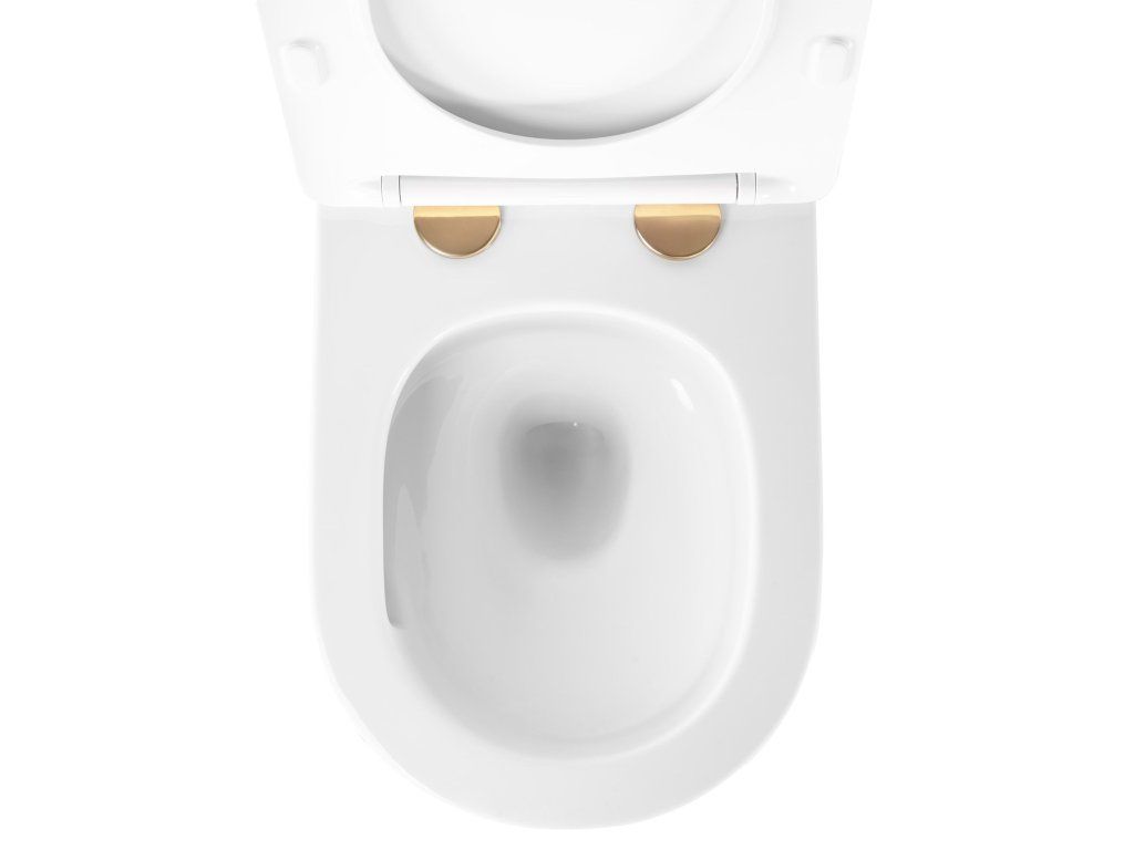 Bezrámová závesná WC misa, biela so zlatým okrajom a inovatívnym splachovacím systémom Tornado je moderným riešením, ktoré spája eleganciu, jednoduché čistenie a účinnosť splachovania. Bezrámový dizajn dodáva nielen moderný nádych, ale tiež uľahčuje udržiavanie okolia misy v čistote. Tornado System: Vďaka pokročilému splachovaciemu systému Tornado voda krúživým pohybom steká dole a efektívne tak opláchne celý povrch misy. To zaisťuje nielen dôkladné opláchnutie, ale zároveň minimalizuje usadzovanie nečistôt, čo prispieva k hygiene. Miska je vhodná pre väčšinu podomietkových rámov Geberit, Grohe, Sanit, Rea.Dodatočné parametre