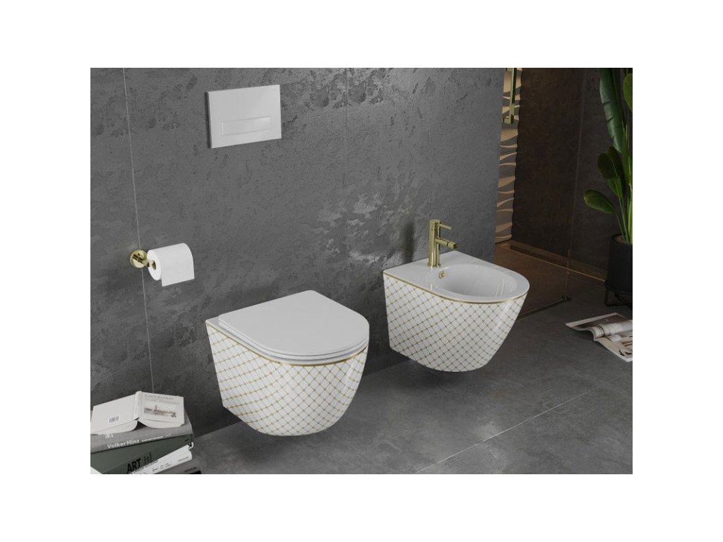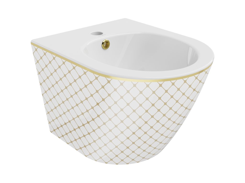 Závesný bidet Mexen Lena, biely/zlatý károvaný vzor - 35224809