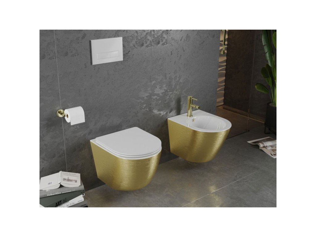 Závesný bidet Mexen Lena, vzor biela/zlatá linka - 35224807
