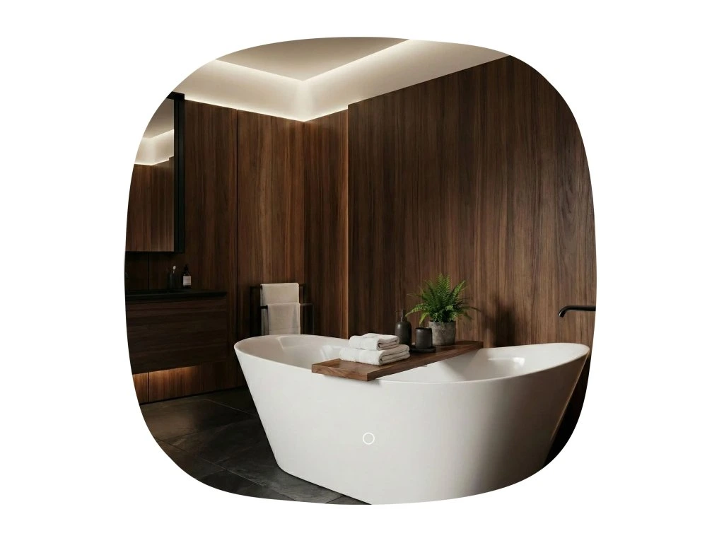 Hľadáte štýlový a praktický doplnok do svojho interiéru? Oceňte eleganciu a modernosť vo svojej kúpeľni vďaka nášmu nástennému LED zrkadlu Rea 70×70 cm. Je to ideálne spojenie štýlu a funkčnosti, ktoré očarí každého používateľa. Toto štvorcové zrkadlo s jemne zaoblenými rohmi, vyrobené z najlepších materiálov, nielen opticky zväčší priestor, ale zároveň zabezpečí spoľahlivé osvetlenie.Unikátny tvar so zaoblenými rohmi vnáša do interiéru ľahkosť a moderný dizajn a dokonale narúša ostré línie kúpeľňovej armatúry.LED osvetlenie s neutrálnou farbou svetla zaručuje prirodzený a jasný odraz.Intuitívne dotykové tlačidlo umožňuje rýchle a hygienické ovládanie svetla a podporuje udržiavanie sklenenej plochy v dokonalej čistote.Možnosť stmievania umožňuje plynulú reguláciu jasu, vďaka čomu si jednoducho vytvoríte relaxačnú atmosféru počas večerného kúpeľa.Praktický kábel so zástrčkou zaisťuje okamžitú pripravenosť na použitie a jednoduchú montáž bez potreby upravovať domácu elektroinštaláciu.Kúpeľňové LED zrkadlo Rea je výnimočnou voľbou pre ľudí, ktorí si cenia každodenný komfort a moderný dizajn. Dokonalé v každom detaile, vyrobené s dôrazom na najvyššiu kvalitu, bude ozdobou vašej kúpeľne. Vďaka pevnej konštrukcii, jednoduchej montáži a úspornej technológii si môžete byť istí, že vám bude slúžiť dlhé roky.Buďte prvý, kto napíše príspevok k tejto položke.