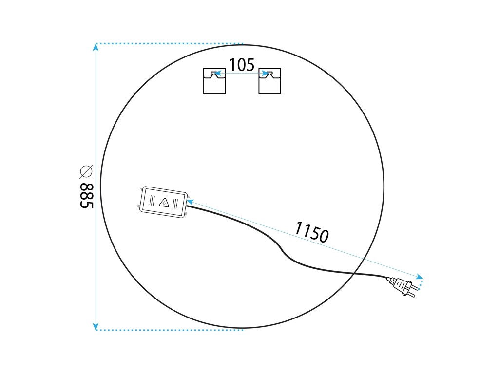 Okrúhle zrkadlo s led osvetlením je ideálnou voľbou pre tých, ktorí oceňujú komfort používania a moderný dizajn. Zrkadlo je vyrobené z najkvalitnejších materiálov, vyzerá dokonale a je veľmi odolné. Má na výber z troch farieb svetla Led s možnosťou dotykového prepínania – teplá, neutrálna a studená, ako aj funkciu vyhrievania, ktorá zabraňuje zahmlievaniu povrchu. Dotykový spínač umiestnený v paneli zrkadla sa pri aktívnej funkcii rozsvieti na modro. Biely napájací kábel s dĺžkou 110 cm. Hrúbka zrkadla: hĺbka zrkadla 4 mmDodatočné parametre