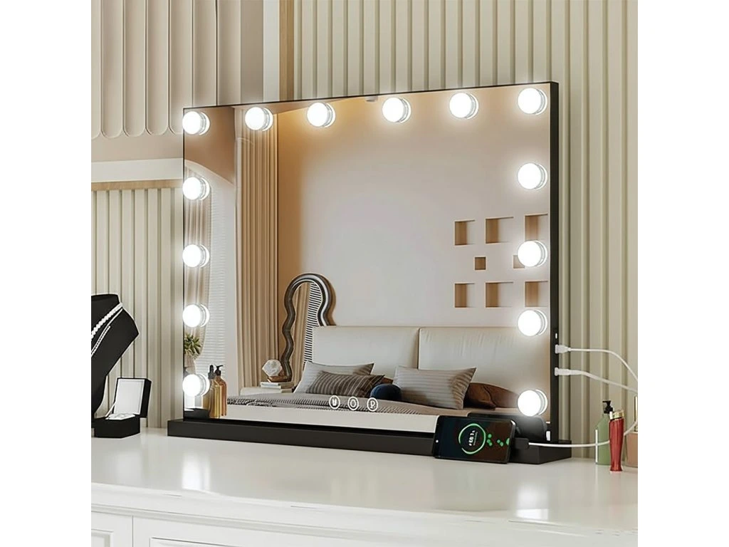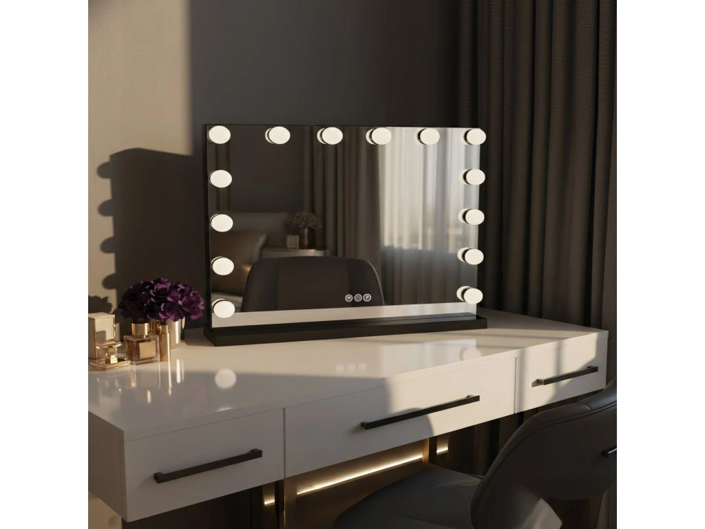 Oceňte profesionalitu a filmový lesk vo svojom vlastnom domove s LED zrkadlom Hollywood od REA. Toto výnimočné spojenie ikonického dizajnu a modernej osvetľovacej technológie premení obyčajný toaletný stolík na profesionálne miesto na líčenie. Vyrobené s dôrazom na detaily poskytuje ideálne podmienky na každodennú starostlivosť a zaručuje presnosť a pohodlie každý deň.Regulácia farby svetla – možnosť zmeny farby osvetlenia umožňuje prispôsobiť žiaru dennej dobe alebo typu vykonávaného make-upu, čo uľahčuje dosiahnutie perfektného efektu za každých podmienok.Funkcia stmievania – plynulé ovládanie intenzity svetla umožňuje prispôsobiť jas individuálnym potrebám, chráni zrak pred únavou a vytvára správnu atmosféru v miestnosti.Ikonický dizajn s LED žiarovkami – charakteristické dekoratívne svetelné body rozmiestnené okolo obdĺžnikovej zrkadlovej plochy dodávajú interiéru luxusný charakter a robia zo zrkadla centrálny dekoratívny prvok.Dve možnosti montáže – univerzálna konštrukcia umožňuje stabilné postavenie zrkadla na dosku pomocou priloženej nožičky alebo jeho bezpečné zavesenie na stenu, čo vám dáva veľkú voľnosť pri usporiadaní priestoru.Integrovaný USB vstup – praktický port umiestnený v konštrukcii umožňuje pohodlné nabíjanie telefónu alebo tabletu počas líčenia, vďaka čomu sú vaše zariadenia vždy poruke a pripravené na použitie.Stabilné sieťové napájanie – pripojenie priamo do zásuvky pomocou zástrčky zaisťuje stály a silný svetelný lúč bez rizika náhleho zhasnutia osvetlenia počas používania. LED zrkadlo Hollywood je ponukou pre ľudí, ktorí oceňujú dizajnové doplnky spájajúce estetiku s maximálnou praktickosťou. Jeho efektná forma sa skvele hodí do luxusných glamour interiérov, moderných spální aj profesionálnych šatníkov. Výberom tohto modelu od REA získavate vybavenie, ktoré reálne zvyšuje štandard každodennej starostlivosti a dodáva interiéru prestížny nádych.Buďte prvý, kto napíše príspevok k tejto položke.
