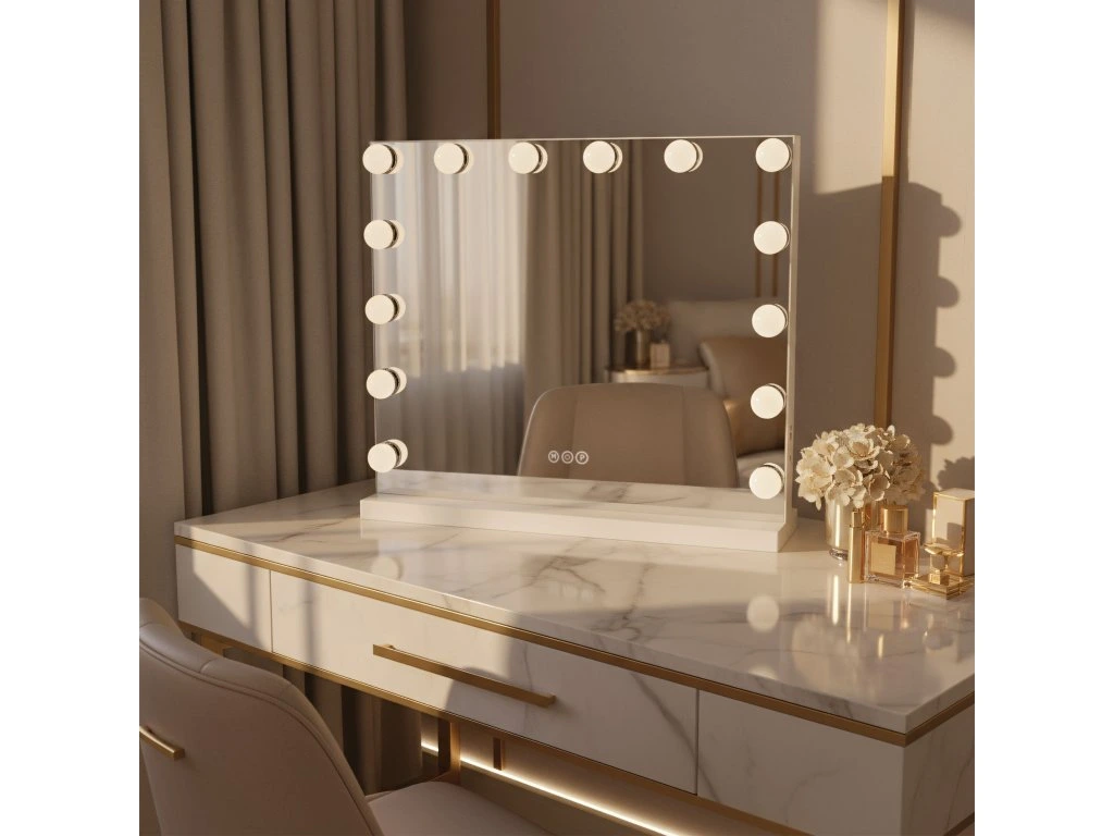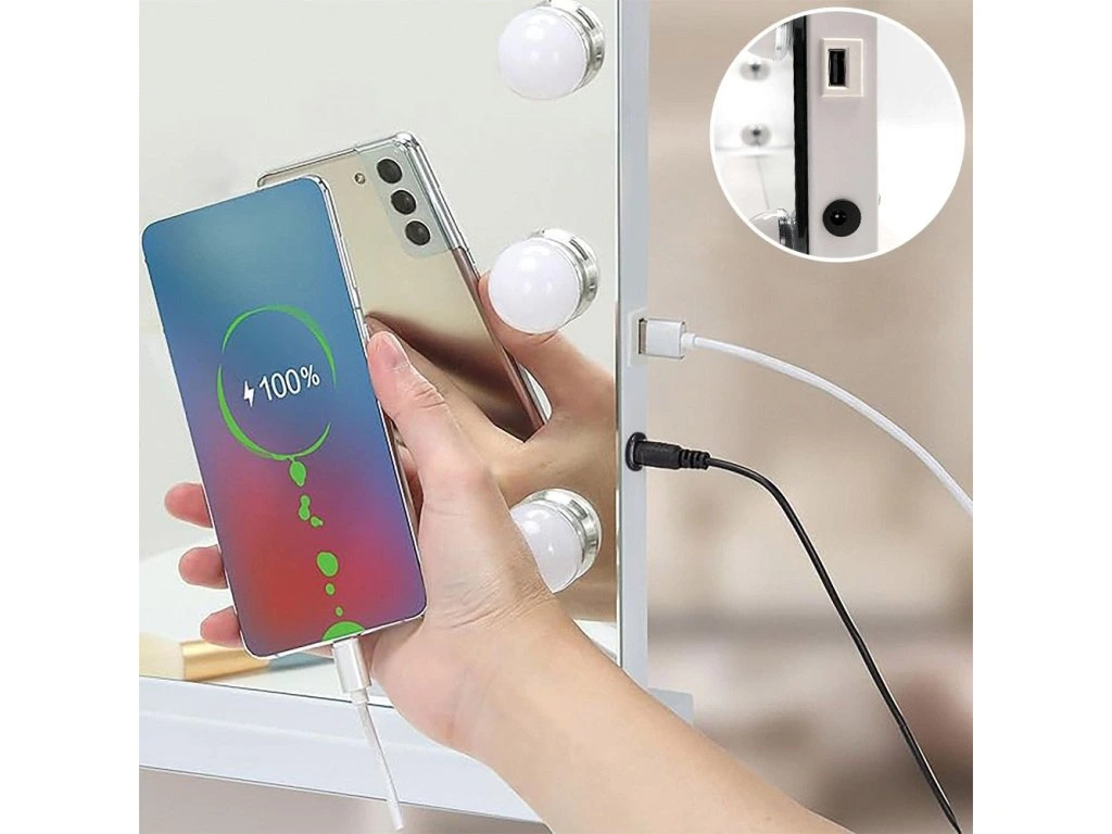 Oceňte profesionalitu a filmový lesk vo svojom vlastnom domove s LED zrkadlom Hollywood od REA. Toto výnimočné spojenie ikonického dizajnu a modernej osvetľovacej technológie premení obyčajný toaletný stolík na profesionálne miesto na líčenie. Vyrobené s dôrazom na detaily poskytuje ideálne podmienky na každodennú starostlivosť a zaručuje presnosť a pohodlie každý deň.Regulácia farby svetla – možnosť zmeny farby osvetlenia umožňuje prispôsobiť žiaru dennej dobe alebo typu vykonávaného make-upu, čo uľahčuje dosiahnutie perfektného efektu za každých podmienok.Funkcia stmievania – plynulé ovládanie intenzity svetla umožňuje prispôsobiť jas individuálnym potrebám, chráni zrak pred únavou a vytvára správnu atmosféru v miestnosti.Ikonický dizajn s LED žiarovkami – charakteristické dekoratívne svetelné body rozmiestnené okolo obdĺžnikovej zrkadlovej plochy dodávajú interiéru luxusný charakter a robia zo zrkadla centrálny dekoratívny prvok.Dve možnosti montáže – univerzálna konštrukcia umožňuje stabilné postavenie zrkadla na dosku pomocou priloženej nožičky alebo jeho bezpečné zavesenie na stenu, čo vám dáva veľkú voľnosť pri usporiadaní priestoru.Integrovaný USB vstup – praktický port umiestnený v konštrukcii umožňuje pohodlné nabíjanie telefónu alebo tabletu počas líčenia, vďaka čomu sú vaše zariadenia vždy poruke a pripravené na použitie.Stabilné sieťové napájanie – pripojenie priamo do zásuvky pomocou zástrčky zaisťuje stály a silný svetelný lúč bez rizika náhleho zhasnutia osvetlenia počas používania. LED zrkadlo Hollywood je ponukou pre ľudí, ktorí oceňujú dizajnové doplnky spájajúce estetiku s maximálnou praktickosťou. Jeho efektná forma sa skvele hodí do luxusných glamour interiérov, moderných spální aj profesionálnych šatníkov. Výberom tohto modelu od REA získavate vybavenie, ktoré reálne zvyšuje štandard každodennej starostlivosti a dodáva interiéru prestížny nádych.Buďte prvý, kto napíše príspevok k tejto položke.