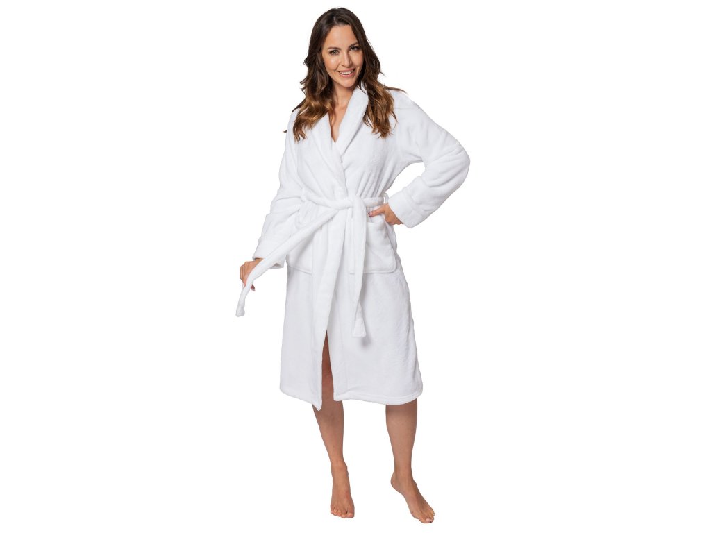 Mäkký plyšový župan. Ideálny spoločník na chladné rána a dlhé večery. Vďaka dĺžke po kolená je ideálny najmä na jeseň a v zime. Pásik pripevnený k županu umožňuje nastaviť jeho šírku.Dodatočné parametre